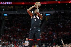 此役杜蘭特出場45分鐘24投13中,三分8中2、罰球7中7砍下35分5籃板6助攻1蓋帽,有5失誤,正負(fù)值+4。末節(jié)杜蘭特連中關(guān)鍵三分,加時賽的中投也幫助火箭擴大優(yōu)勢。
