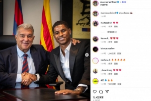拉什福德先是曬出了自己和拉爾波塔的簽約照,并配文:“巴薩萬歲!”