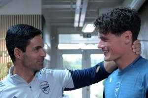 阿森納官網(wǎng)曬照,記錄了這名新援在俱樂部的第一天。