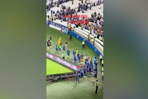 賽后,當申花隊球員走過河南隊客隊看臺的時候,有球迷喊“申花是冠軍”,也有球迷喊“上海只有申花隊”,其中還夾雜著“申花是世界杯冠軍”、“27號繼續(xù)干恁”等喊聲。