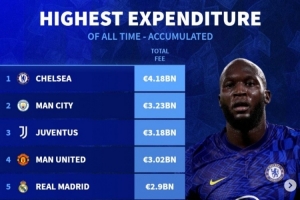 體育資訊7月25日訊 《轉(zhuǎn)會市場》統(tǒng)計了各隊歷史轉(zhuǎn)會費總支出情況,切爾西獨自領(lǐng)跑。