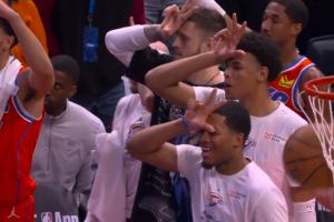 GIF-雷霆爆炸??!杰倫威壓哨三分轟進!