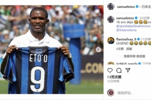 埃托奧社媒曬出自己與伊布當(dāng)時(shí)互換東家的照片,配文:“16年前。”并@伊布、國(guó)米和巴薩。