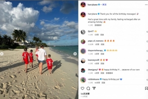 凱恩曬出自己同家人的海邊度假照,并配文:“謝謝大家的生日祝福!??我和家人度過了愉快的時光,在經歷一個美好的假期后感覺精神煥發(fā)。”