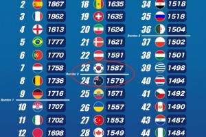 體育資訊7月29日訊 除了美加墨作為東道主自動確定為2026世界杯一檔球隊之外,其他參賽球隊將根據(jù)FIFA排名來確定分檔,而在爭奪世界杯二檔球隊方面,韓國和澳大利亞競爭激烈,因為雙方排名和積分非常接近。
