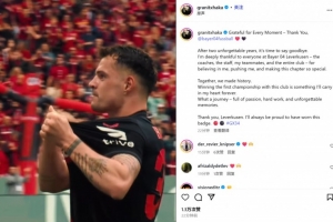 體育資訊7月30日訊 勒沃庫森已經官宣32歲的中場扎卡轉會桑德蘭,后者也通過社媒發(fā)文告別: