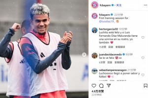 拜仁官方社媒也曬出了迪亞斯隨隊(duì)訓(xùn)練的照片,可以看出他的狀態(tài)相當(dāng)高昂,臉上掛滿笑容。和凱恩等多位球員同框,并且和主帥孔帕尼進(jìn)行了交流。