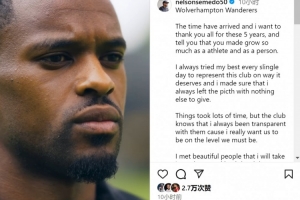 體育資訊7月31日訊 狼隊邊衛(wèi)塞梅多將加盟費內(nèi)巴切,他更新社媒動態(tài),與狼隊告別。