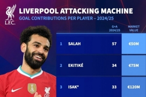 體育資訊7月31日訊 多家媒體報(bào)道伊薩克與利物浦已達(dá)成個人條款,羅馬諾表示利物浦已準(zhǔn)備報(bào)價伊薩克。據(jù)德轉(zhuǎn)數(shù)據(jù)統(tǒng)計(jì),假如伊薩克轉(zhuǎn)會利物浦成真,那樣利物浦將坐擁超級豪華的五大攻擊手,他們分別是薩拉赫、?;倏?、伊薩克、維爾茨、加克波。這五人在上賽季總計(jì)參與進(jìn)球數(shù)達(dá)到驚人的180球,德轉(zhuǎn)總身價達(dá)4.55億歐元。