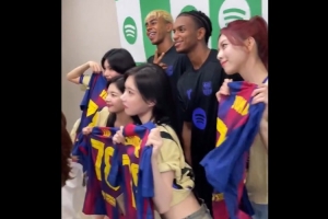 賽后,巴薩球員萊萬(wàn)、亞馬爾、巴爾德與韓國(guó)女團(tuán)ITZY進(jìn)行互動(dòng)。