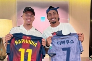 巴薩正在韓國(guó)進(jìn)行季前友誼賽,他們7月31日7-3擊敗首爾FC。賽后,拉菲尼亞曬出與K1聯(lián)賽安陽(yáng)FC球員馬修斯-奧利維拉交換球衣的照片,并配文:很高興見(jiàn)到你,兄弟。