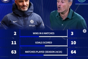 本賽季,切爾西共計參加了63場比賽,場均2.05分,奪得1項冠軍,全隊身價12.7億歐元;巴黎同期參加了64場比賽,場均2.41分,奪得4項冠軍,全隊身價11.2億歐元。