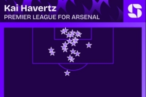 現(xiàn)年26歲的哈弗茨2023年加盟阿森納,他至今已為槍手出戰(zhàn)60場英超,并打進(jìn)22球,其中23/24賽季13球、24/25賽季9球。