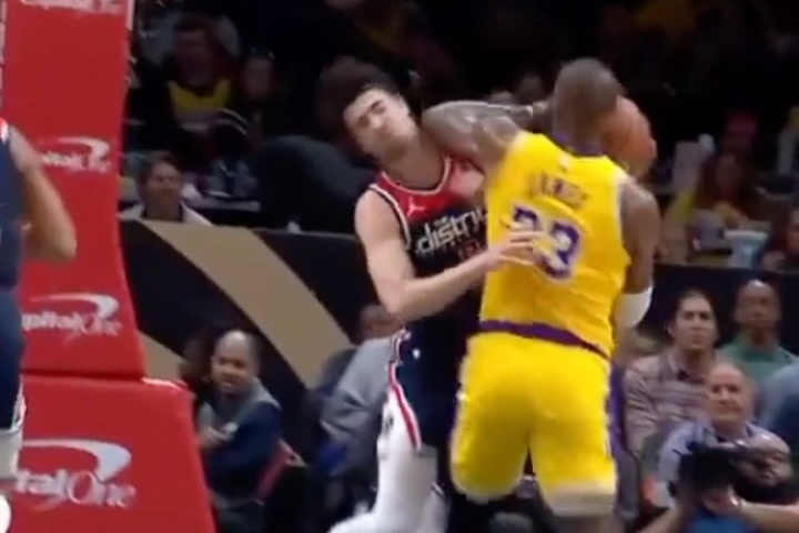 2024年4月,湖人客場挑戰(zhàn)奇才,詹姆斯轉身肘到阿夫迪亞腦袋,從進攻犯規(guī)升級一級惡意犯規(guī)。