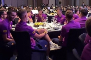 體育資訊8月3日訊 西媒《世界體育報(bào)》報(bào)道稱(chēng),巴薩在首爾四季酒店舉行了告別晚宴,前往亞洲巡回賽的三十名球員被分在三張十人餐桌,其中一張加入了主帥弗里克,成為第十一人。