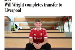 體育資訊08月04日訊 截胡槍手!官方:利物浦簽下17歲前鋒威爾-賴特