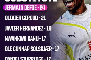 ■以下是英超聯(lián)賽 | 歷史紀錄??替補球員射手榜: