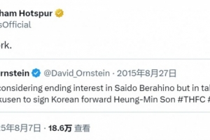 知名記者David Ornstein在2015年夏窗社媒發(fā)文,透露熱刺正在商談引進勒沃庫森前鋒孫興慜,不過當時一些球迷并不看好這筆簽約。