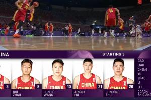 中國男籃首發(fā):朱俊龍、王俊杰、胡金秋、胡明軒、趙睿。