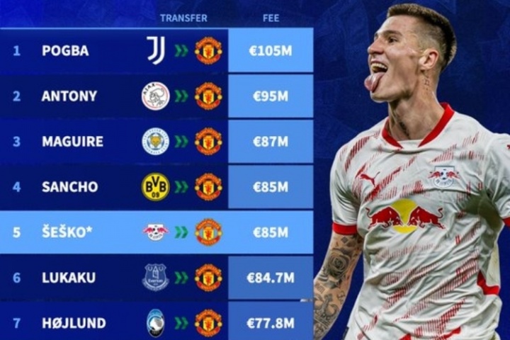 體育資訊08月07日訊 據(jù)德轉(zhuǎn)統(tǒng)計(jì),塞斯科將成為曼聯(lián)隊(duì)史第四高轉(zhuǎn)會(huì)費(fèi)成員,待附加條款觸發(fā)后。