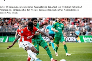波庫目前效力于阿爾克馬爾,兩家俱樂部已經(jīng)就轉(zhuǎn)會事宜達(dá)成一致,球員只需通過體檢就可加盟。這名21歲的邊鋒將和勒沃庫森簽約至2030年,轉(zhuǎn)會費約為1000萬歐。