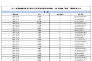 根據(jù)2025年第四屆中青賽賽事安排,中青賽賽事辦公室計(jì)劃于7月11日至7月23日組織第四屆中青賽男子初中年齡段U15組大區(qū)賽比賽,現(xiàn)將(南區(qū))參賽球隊(duì)人員名單予以公示,接受社會(huì)監(jiān)督。公示期間,如有異議,請(qǐng)實(shí)名向中青賽賽事辦公室反映,逾期不再接受反映。