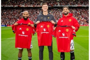 體育資訊8月9日訊 曼聯(lián)官方更新社媒動(dòng)態(tài),曬出新援庫(kù)尼亞、姆貝莫、塞斯科手拿曼聯(lián)球衣的合照。