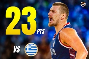 代表塞爾維亞出戰(zhàn)的約基奇本場比賽表現(xiàn)炸裂,他全場出戰(zhàn)27分鐘,兩分球12投8中,三分2中0,罰球10中7,獨(dú)攬23分19籃板4助攻。