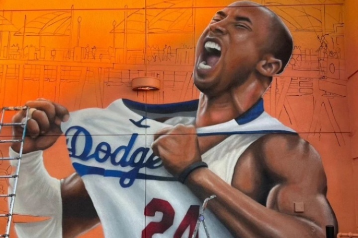 體育資訊08月10日訊 近日,洛杉磯街頭正在繪制科比-布萊恩特的新壁畫,壁畫上,科比穿著道奇隊的球衣。