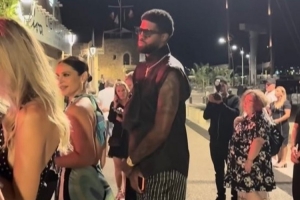 照片中喬治在夜店門口排隊(duì),等待入場(chǎng),值得一提的是,他還戴著護(hù)膝。