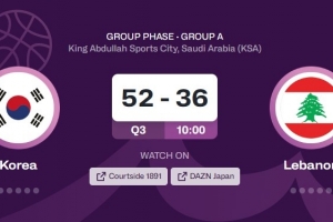 韓國(guó)男籃上半場(chǎng)三分如雨,25投13中,半場(chǎng)結(jié)束時(shí)52比36領(lǐng)先黎巴嫩16分。