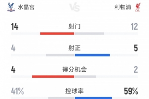 體育資訊8月11日訊 在社區(qū)盾杯決賽,利物浦與水晶宮90分鐘戰(zhàn)成2-2,雙方將進行點球大戰(zhàn)。以下為雙方比賽數(shù)據(jù)對比: