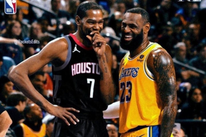 火箭媒體人Bradeaux曬出了火箭前鋒凱文-杜蘭特與湖人前鋒勒布朗-詹姆斯的合成照,配文:“你想不到比這更好的圣誕大戰(zhàn)了。”