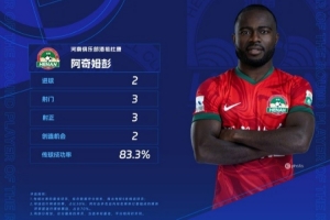 在本輪河南主場迎戰(zhàn)深圳新鵬城的比賽里,阿奇姆彭全場3腳打門全部射正、轉(zhuǎn)化成2個進(jìn)球,幫助球隊(duì)4-1大勝對手。