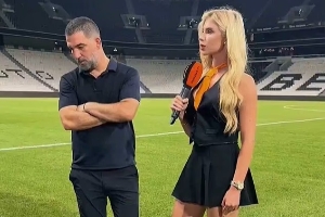 體育資訊08月13日訊 據(jù)《每日郵報(bào)》報(bào)道,在歐聯(lián)杯資格賽取勝的賽后,頓涅茨克礦工主帥阿爾達(dá)-圖蘭在接受球隊(duì)美女記者采訪時(shí),低頭看向另一邊,這被解讀為對(duì)妻子阿斯利漢-多安-圖蘭忠誠的表現(xiàn),兩人在2018年結(jié)婚。