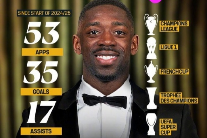 賽后,獻上一次助攻的巴黎前鋒登貝萊獲得本場比賽MVP。