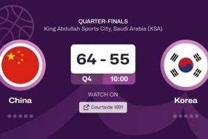 前三節(jié)比賽,中國男籃罰球11罰8中,韓國男籃24罰20中。第三節(jié)比賽,韓國男籃17罰15中。