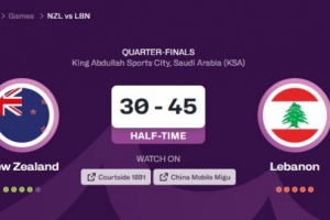 體育資訊8月15日訊 男籃亞洲杯1/4決賽,新西蘭隊(duì)上半場30-45落后黎巴嫩隊(duì)。