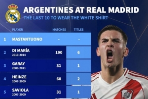 體育資訊8月15日訊 阿根廷中場馬斯坦托諾昨日在皇馬正式亮相,德國轉(zhuǎn)會市場盤點(diǎn)了近10名為皇馬效力的阿根廷球員的出場和奪冠次數(shù)。