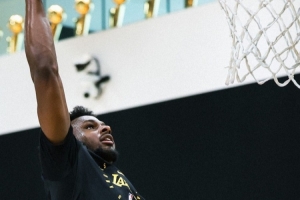 體育資訊8月16日訊 今日,湖人官推曬出一組布朗尼-詹姆斯和杰克-拉拉維亞的訓(xùn)練照。