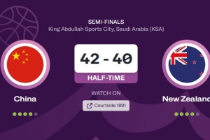 體育資訊8月16日訊 男籃亞洲杯半決賽今天拉開大幕,中國(guó)男籃對(duì)陣新西蘭男籃,半場(chǎng)結(jié)束時(shí),中國(guó)男籃42比40領(lǐng)先。