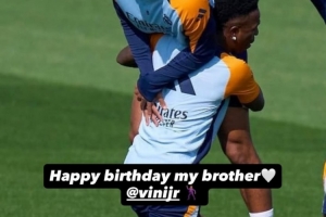 體育資訊7月12日訊 今日是維尼修斯25歲生日,隊(duì)友貝林厄姆也在個(gè)人社媒曬出兩人訓(xùn)練場(chǎng)上的合照,配文為其送上生日祝賀。