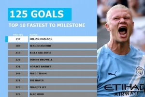 據(jù)媒體統(tǒng)計(jì),哈蘭德加盟曼城以來出戰(zhàn)147場比賽,打進(jìn)125球,成為曼城歷史上最快達(dá)成125球的球員,比第二快的阿圭羅少用42場比賽。
