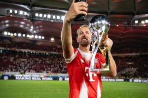 體育資訊8月17日訊 德國超級杯比賽,凱恩破門,幫助拜仁2-1擊敗斯圖加特,捧起冠軍獎杯。