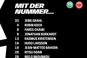 法蘭克福首發(fā):33-格拉爾、4-科赫、8-查伊比、9-布爾卡特、13-拉斯穆斯-克里斯滕森、16-雨果-拉爾森、19-巴霍亞、20-堂安律、29-恩庫恩庫、34-納姆迪-科林斯、42-烏尊