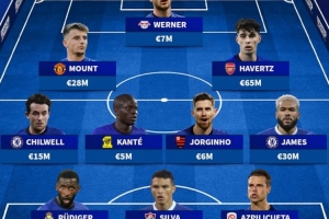 前鋒:芒特(曼聯(lián),2800萬)、維爾納(萊比錫,700萬)、哈弗茨(阿森納,6500萬)