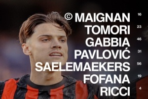 米蘭首發(fā):16-邁尼昂、31-帕夫洛維奇、46-加比亞、23-托莫里、2-埃斯圖皮尼安、19-福法納、4-里奇、8-奇克、56-薩勒馬科爾斯、11-普利西奇、10-萊奧
