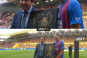 體育資訊8月18日訊 在南特對陣巴黎的首輪法甲聯(lián)賽開始前,南特主席向巴黎贈送了特別的禮物。