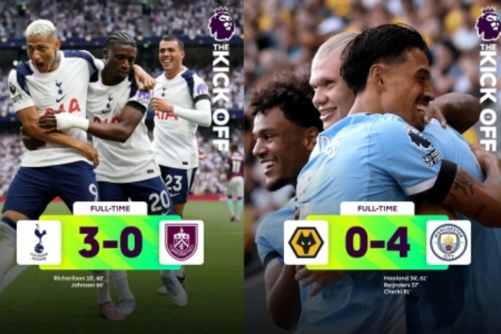 體育資訊08月18日訊 新賽季英超首輪基本結(jié)束,傳統(tǒng)BIG6的比賽都已經(jīng)打完,其中利物浦4-2伯恩茅斯、曼城4-0狼隊、熱刺3-0伯恩利、切爾西0-0水晶宮、阿森納1-0曼聯(lián)。
