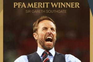 PFA社媒曬出海報,確認前英格蘭主帥索斯蓋特榮獲2025年PFA卓越貢獻獎,他將在今晚的頒獎典禮中因對英格蘭足球的杰出貢獻而受到表彰。
